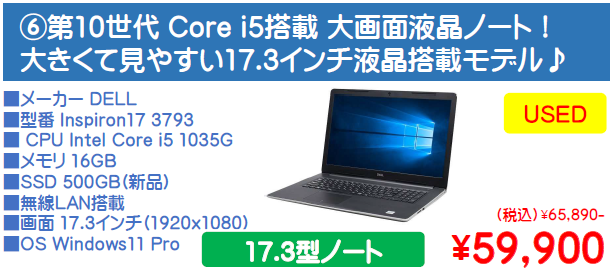- USED_DELL Inspiron17 3793 59,900円(税別)