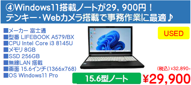 - USED_DELL Latitude5590 i3 29,900円(税別)