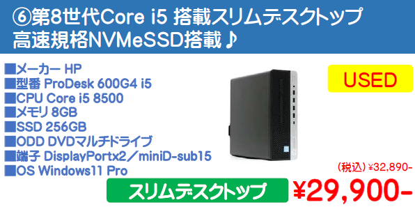 - USED_Pro Desk 400 G7 SFF 49,900円(税別)
