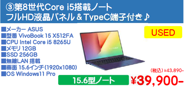 - USED_ThinkPad L590 ノートPC 39,900円(税別)
