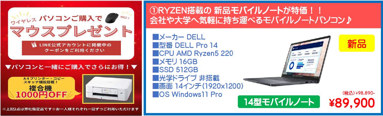 寒さに負けず、業務効率はしっかりアップ!💪今月も、「お買い得」モデルを紹介しています。 ご来店をお待ちしています!! 🔽 詳しくはホームページをチ2025年 12月のおススメチェック! - 11月18日(火) 刈谷店臨時休業のお知らせ平素はPCワールドをご利用いただき、誠にありがとうございます。 誠に勝手ながら、2025年11月18日(火)はメンバーを休ませるため店舗業務を休業とさせていただきます。休業日は、お問い合わせやご注文の受付、商品の販売、ア […]