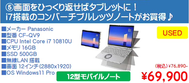 - USED_Panasonic CF-QV1 79,900円(税別)