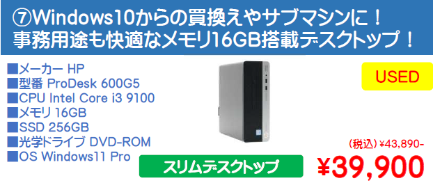 - USED_HP ProDesk 400G6 SFF 29,900円(税別)