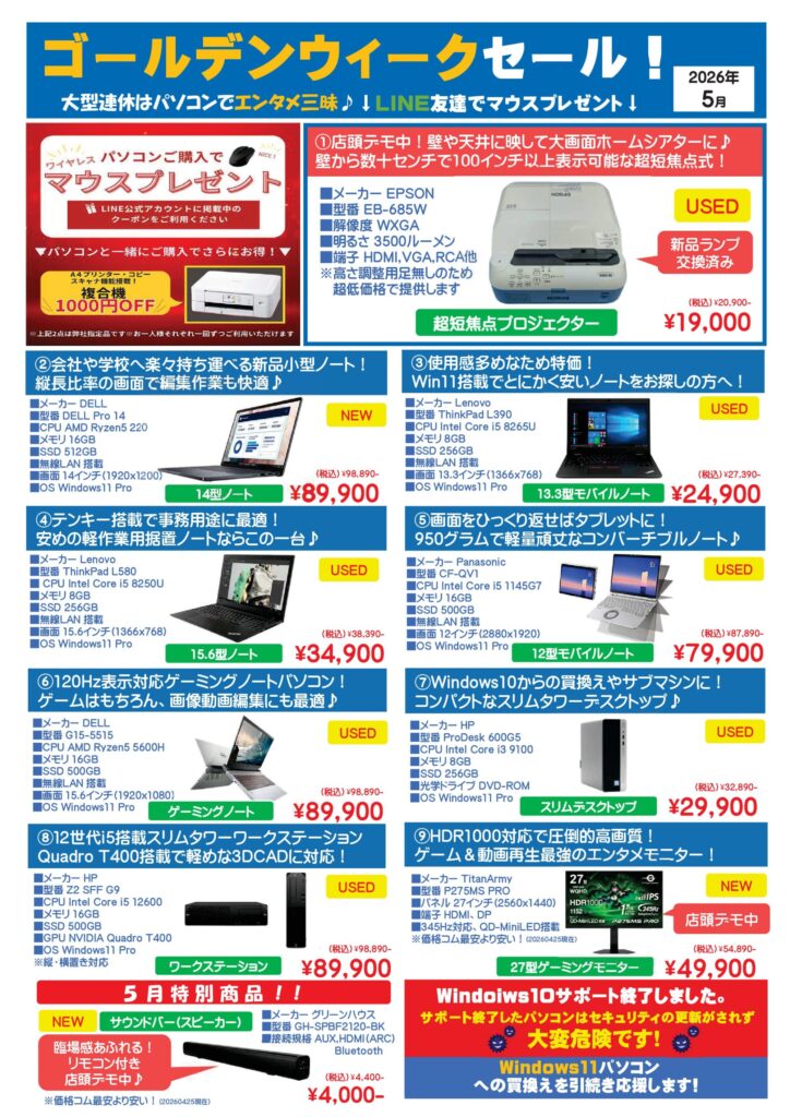 ゴールデンウィークセール中!💪今月も、「お買い得」モデルを紹介しています。ご来店をお待ちしています!!