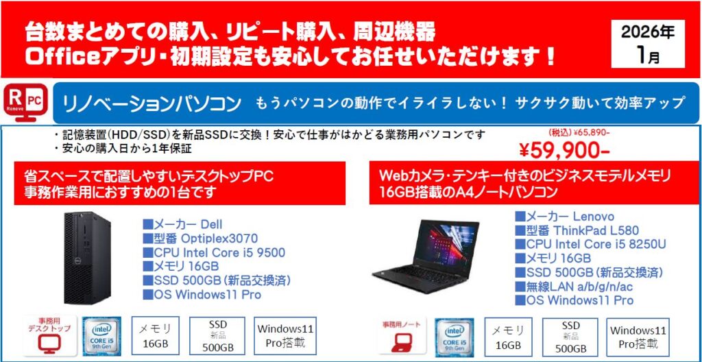 - 中古パソコンをベースにリノベーションし、高機能&低価格を両立