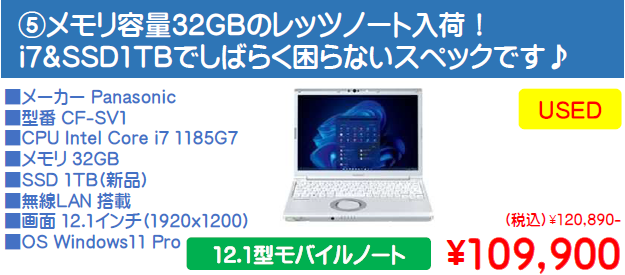 - USED_Panasonic CF-FV1 74,900円(税別)