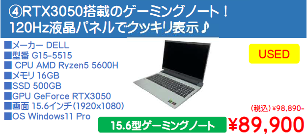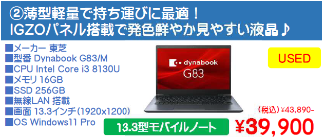 - USED_DELL Latitude5590 i3 29,900円(税別)